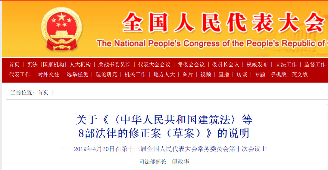 關于《〈中華人民共和國建筑法〉等8部法律的修正案(草案)》的說明
