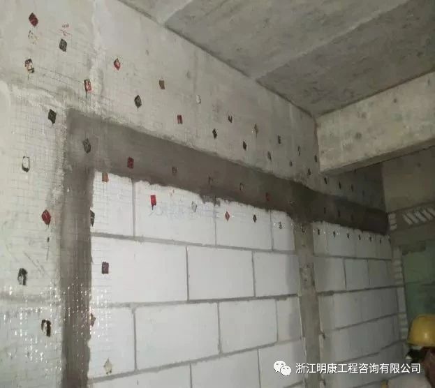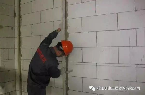 抹灰前對檢查發現的砌塊砌體表面缺棱掉角、開槽位置等需分層修補。做法是:先淋濕基體表面,刷摻水重10%的建筑膠水泥砂漿一道,緊跟抹1:2水泥砂漿,每遍厚度應控制在7~9mm。