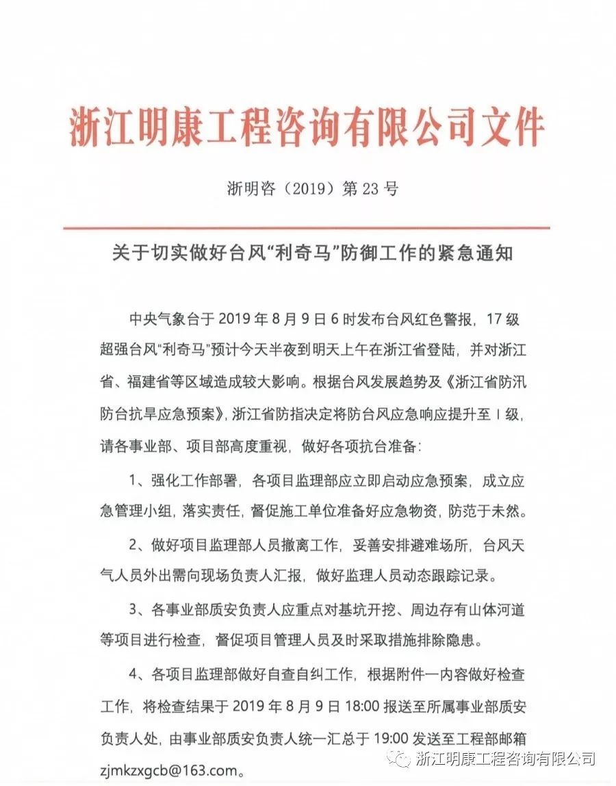 應對臺風王“利奇馬”的到來,明康咨詢總部立即發出緊急通知: