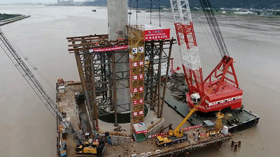 “一切準(zhǔn)備就緒,開始起吊”。2019年的8月30日上午6點(diǎn),溫州七都大橋北汊橋南塔首片鋼混疊合梁被600噸浮吊船平穩(wěn)提起,精準(zhǔn)地安裝到預(yù)定位置。這標(biāo)志著大橋建設(shè)又一重大節(jié)點(diǎn)——主梁吊裝施工正式開始。