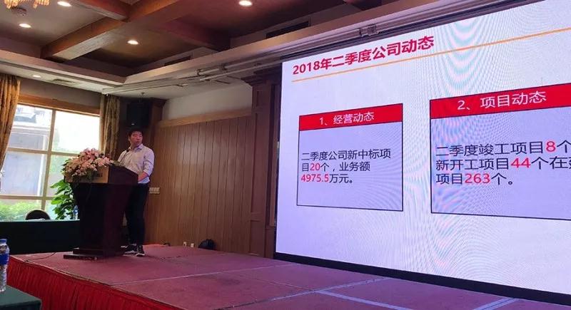 會議開始,由公司工程部經(jīng)理何伯豐對公司近期獲得的榮譽進(jìn)行宣布,以及對二季度公司項目動態(tài)、行業(yè)動態(tài)進(jìn)行數(shù)據(jù)統(tǒng)計分析,結(jié)合工程部二季度工作中發(fā)現(xiàn)的問題進(jìn)行總結(jié)匯報和后期工程部對項目考核的調(diào)整,工作計劃的說明;