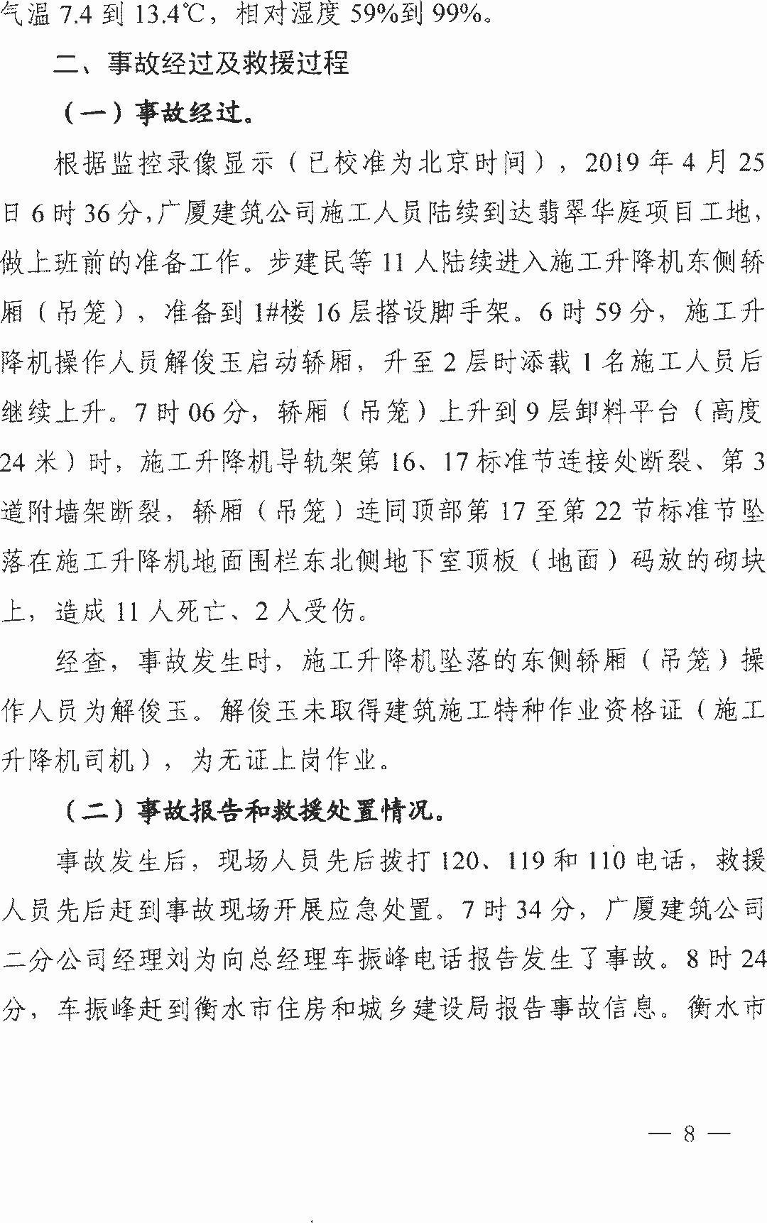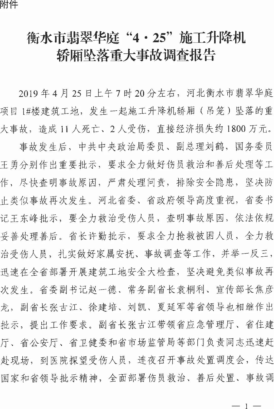 4月25日早晨八點(diǎn),河北衡水市翡翠華庭工地施工升降梯折斷,造成施工人員11死2重傷。