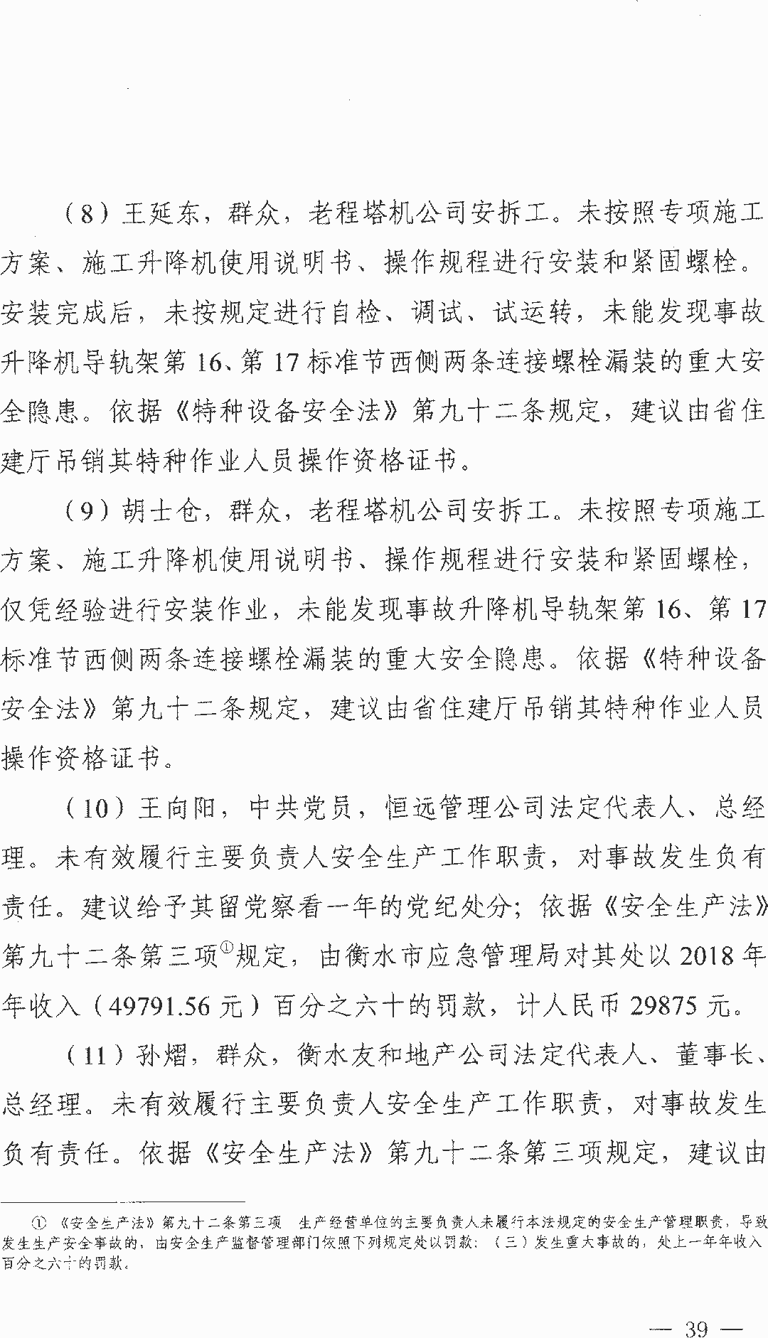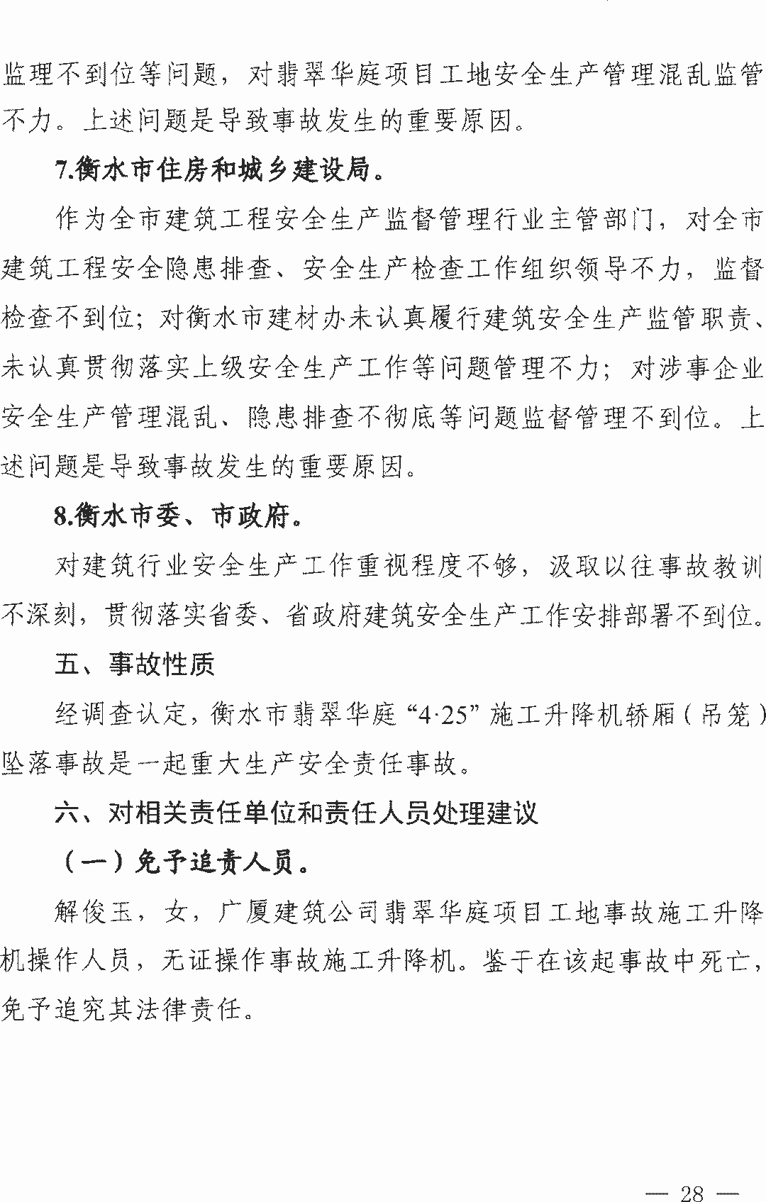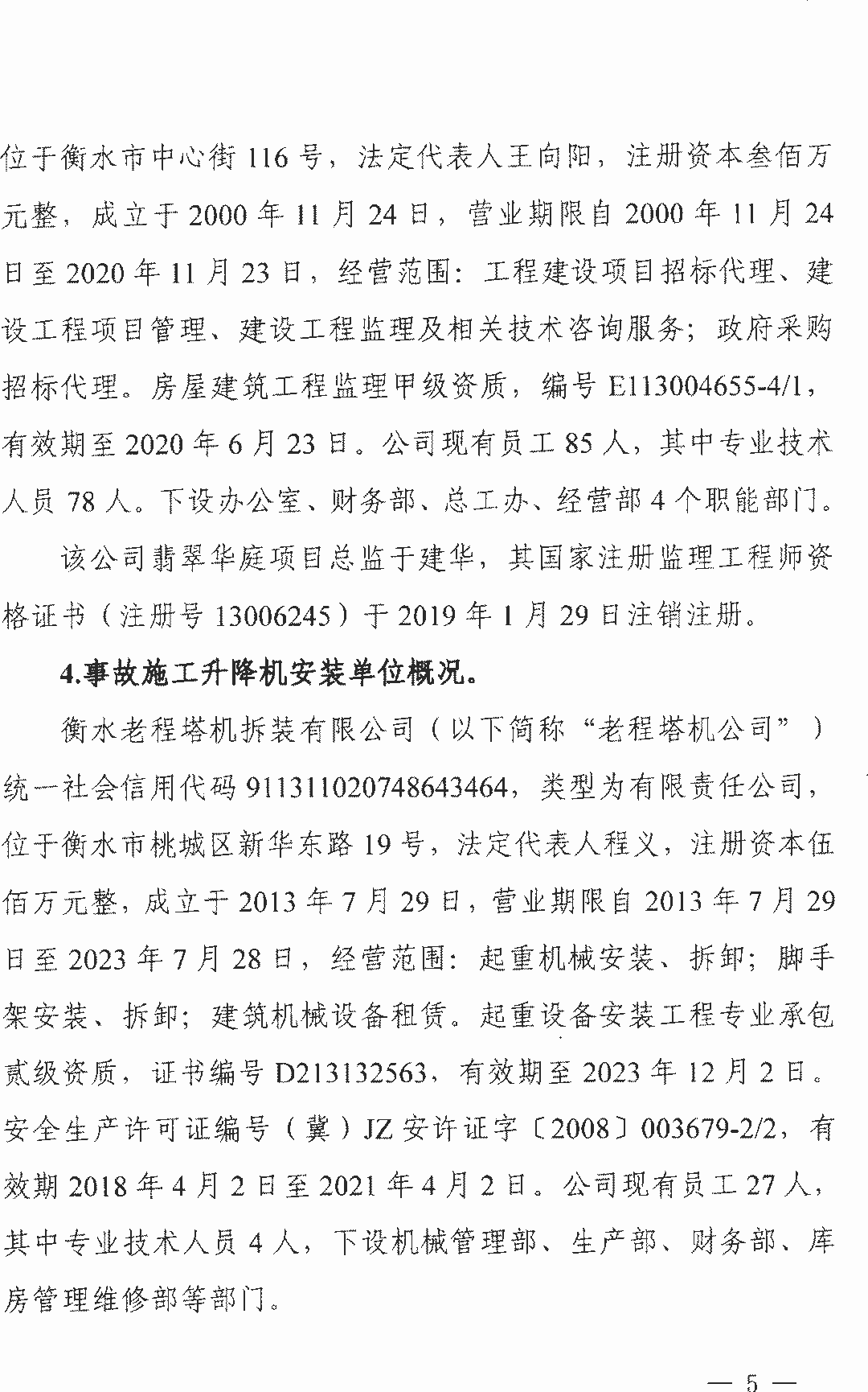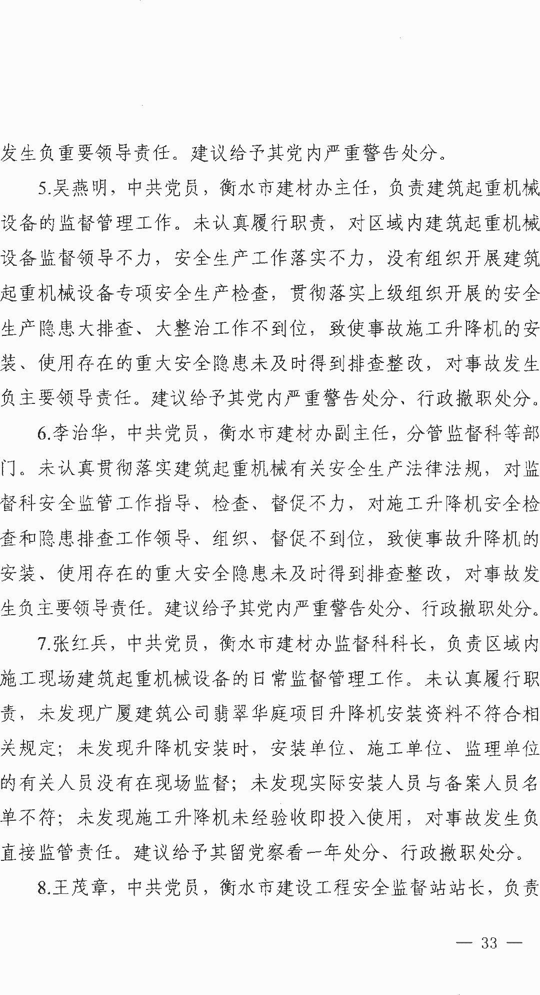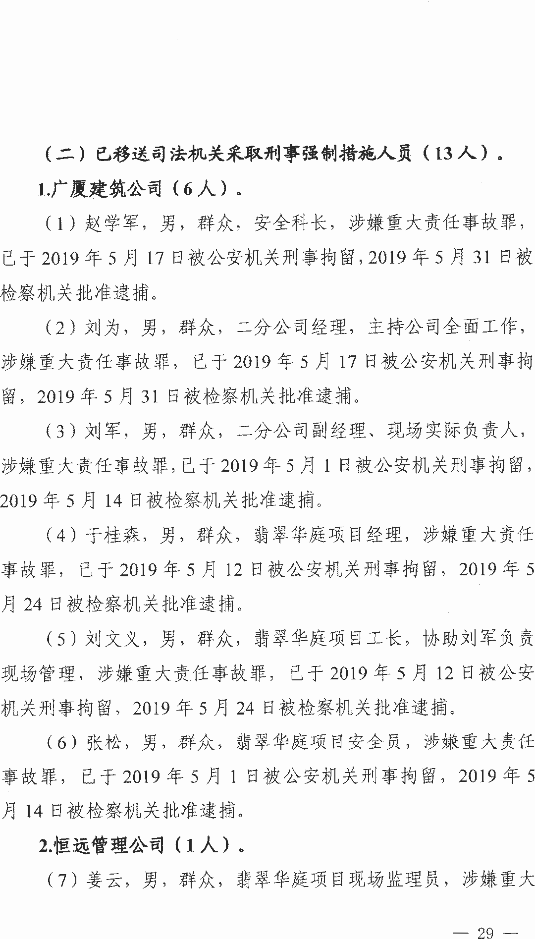 于桂森,翡翠華庭項(xiàng)目經(jīng)理,在衡水廣廈建筑公司“掛證”,建議吊銷執(zhí)業(yè)資格證書、終身不予注冊(cè),建議吊銷安全生產(chǎn)考核合格證書,已被檢察機(jī)關(guān)批準(zhǔn)逮捕。