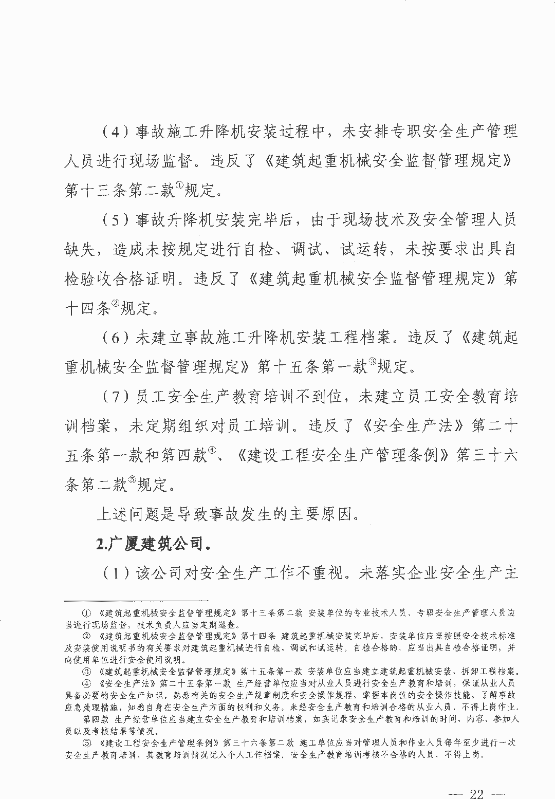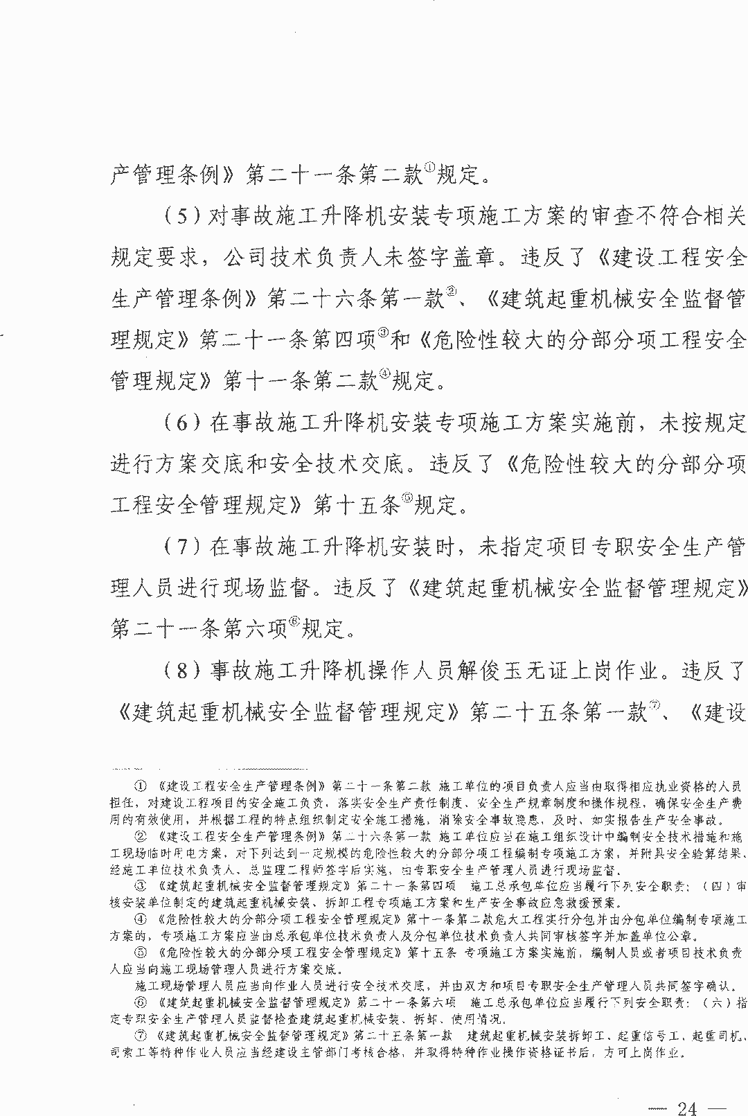 施工升降機(jī)安裝單位:吊銷資質(zhì),150萬元罰款。監(jiān)理單位:降低資質(zhì),110萬元罰款,法人予以29875元罰款。建設(shè)單位:110萬元罰款,法人予以177791元罰款。