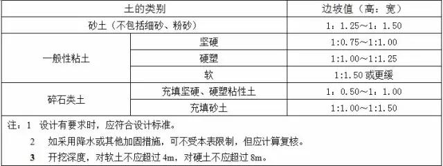 1、臨時性挖方的邊坡值應符合下表的規定。