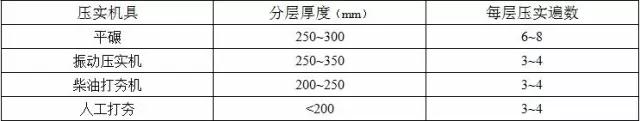 填土施工時的分層厚度及壓實遍數